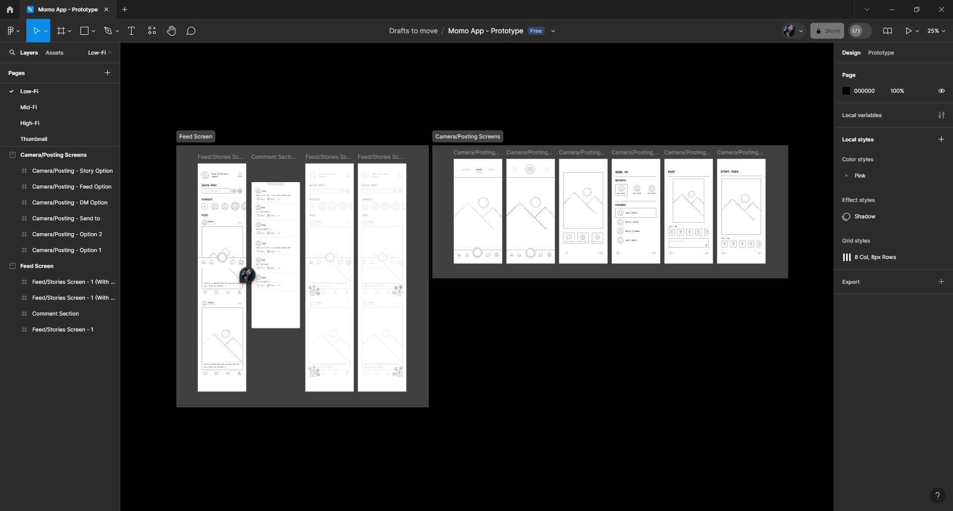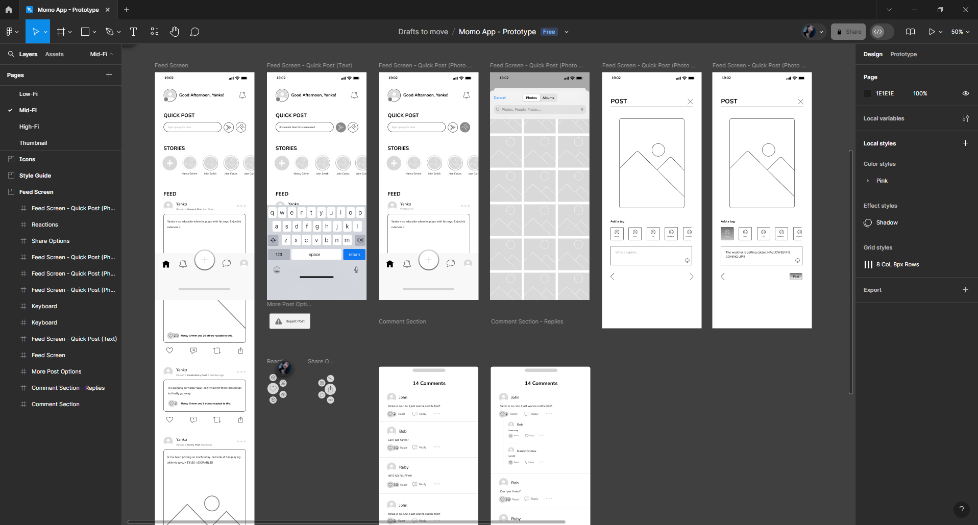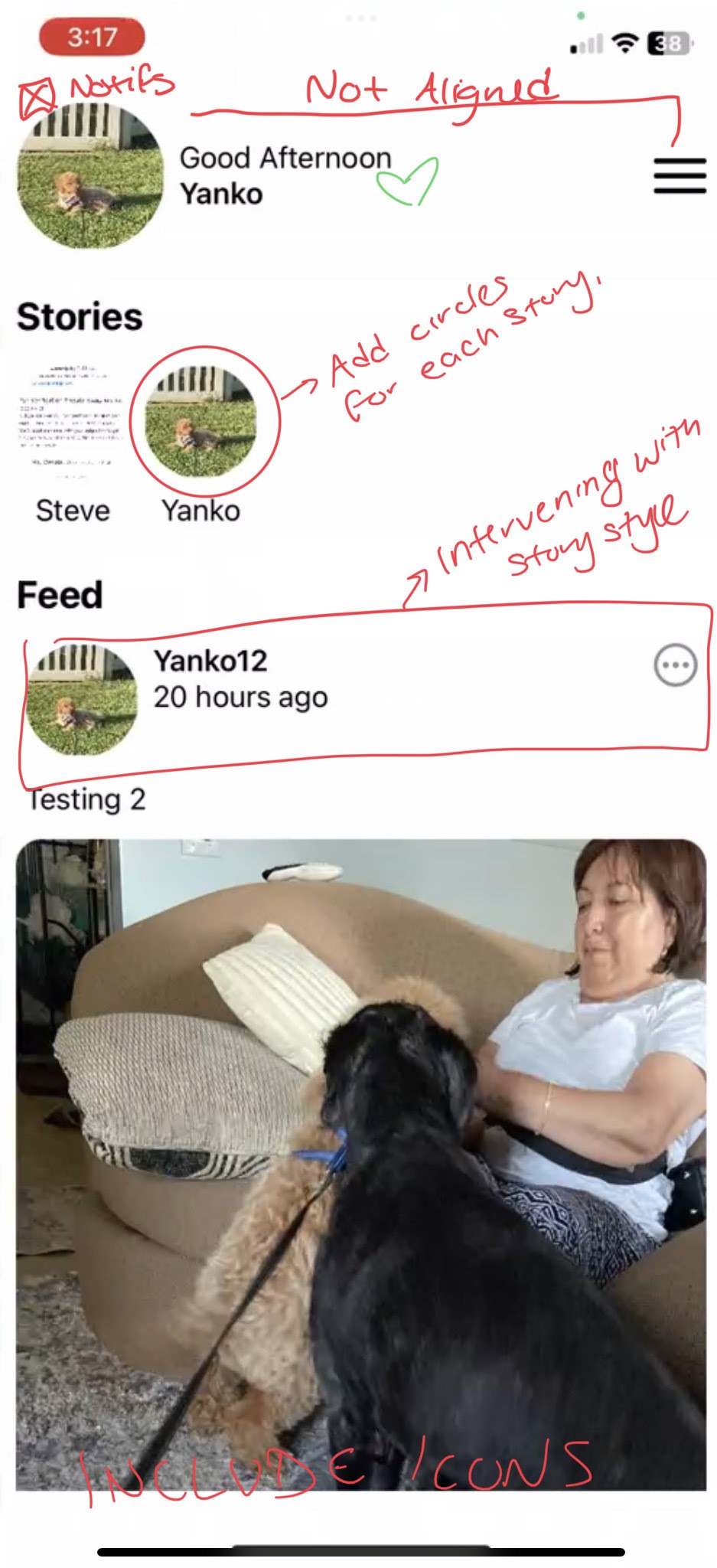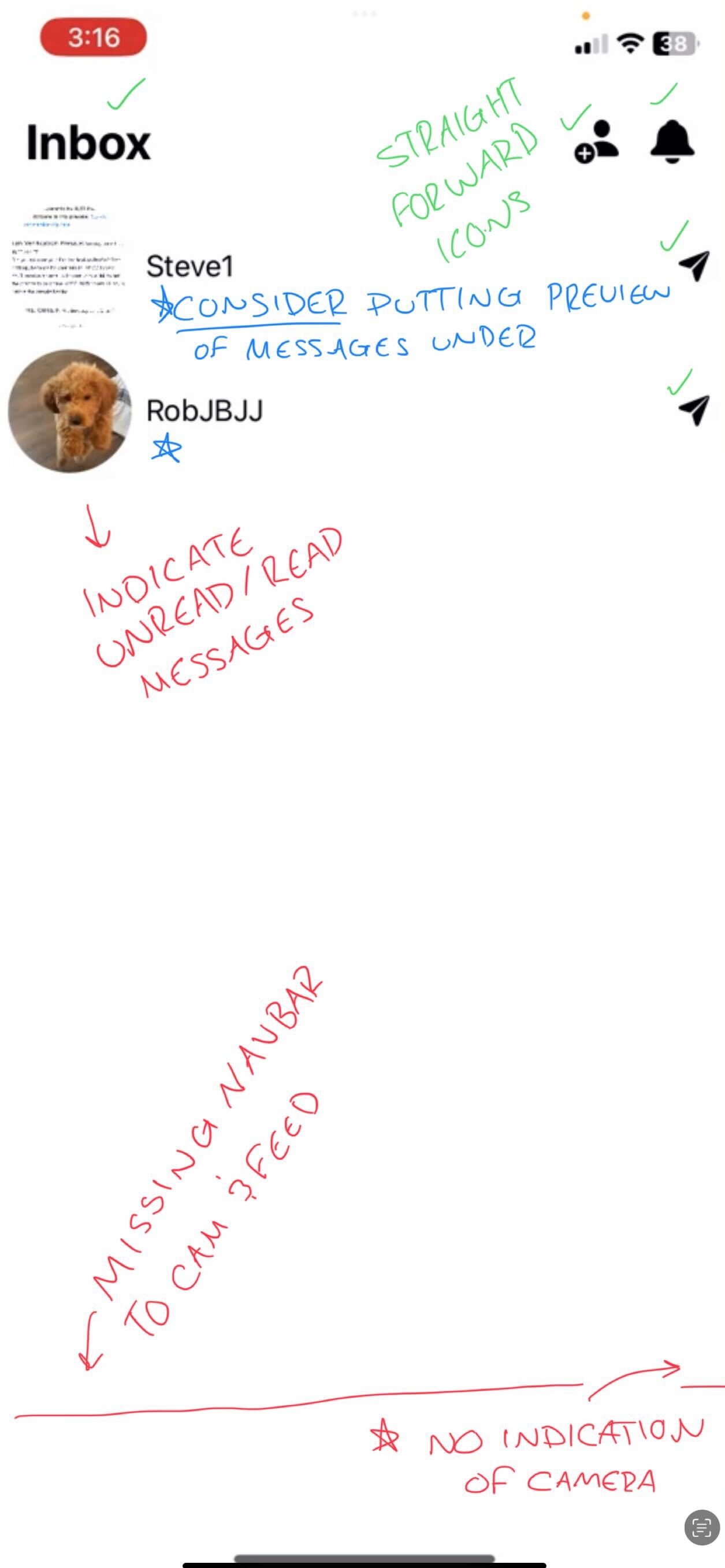 After reviewing my notes, Bryan and the rest of the team initially decided that I should focus on only redesigning 3 main screens: the Feed, the Comments section, and the Messages Screen.