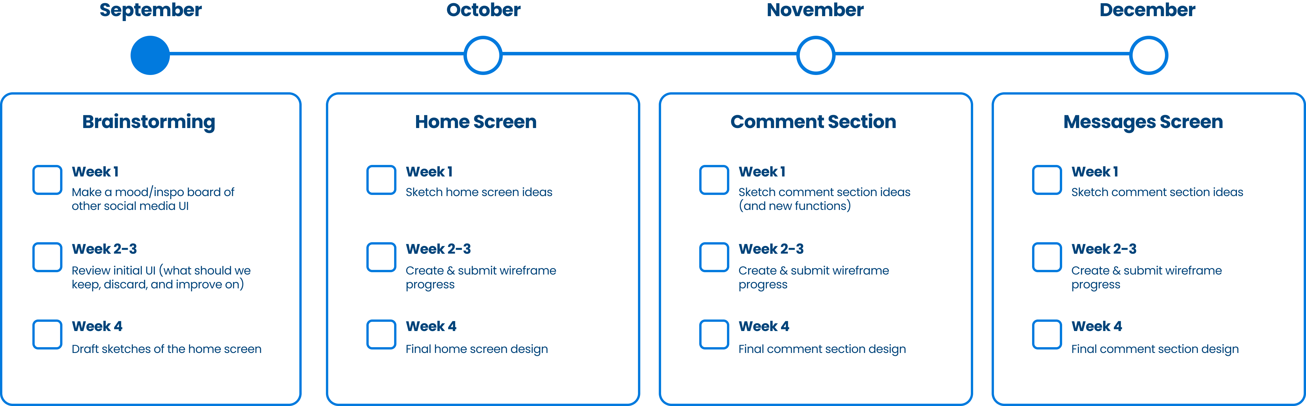 After our initial meeting, I proposed to him what services I could offer for his dilemma, I was going to provide him with moodboards, sketches, wireframes, and a final prototype throughout the next few months. We also came up with a rough timeline of when he wanted these screens to be done: